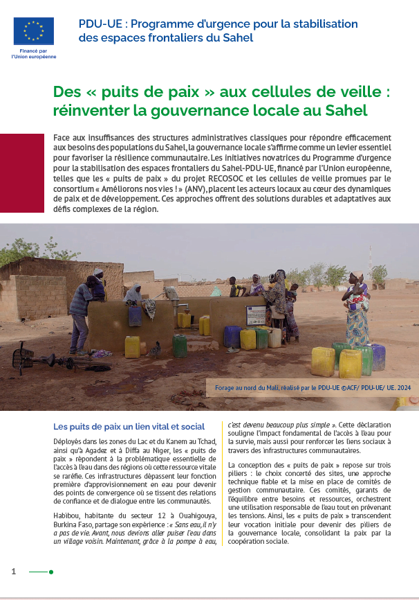 Le programme d’urgence pour la stabilisation des espaces frontaliers du G5 Sahel-PDU-UE, financé par l’UE, déploie une approche intégrée pour faire face aux défis complexes des régions frontalières. E